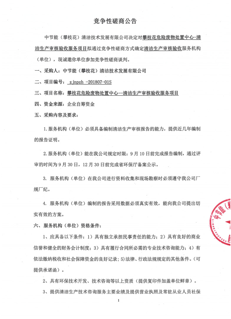 清潔生產(chǎn)審核驗(yàn)收服務(wù)項(xiàng)目——競爭性磋商公告