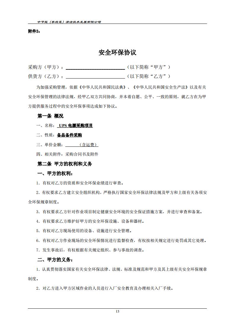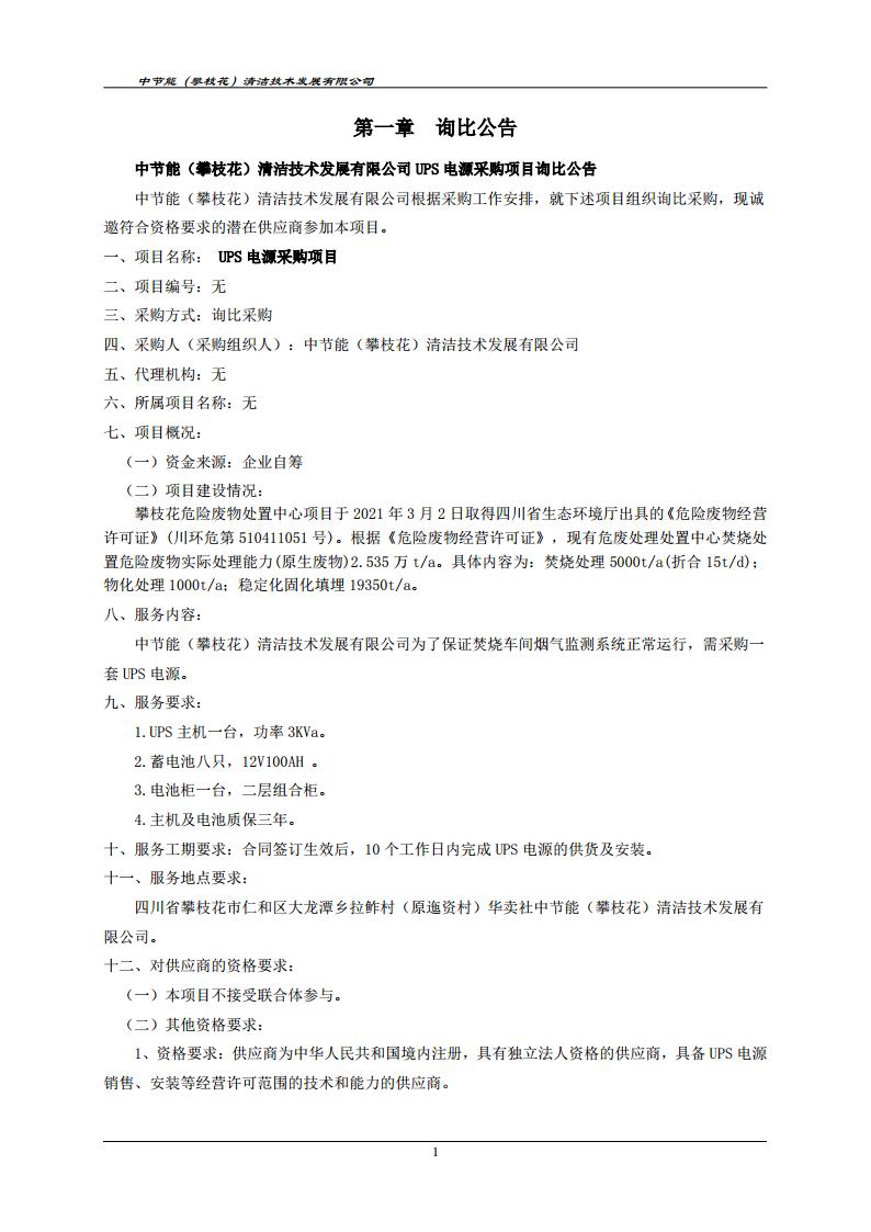 UPS電源采購項目——詢比采購文件