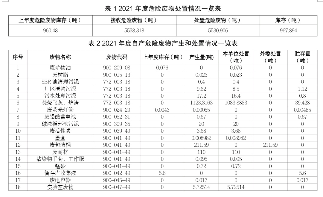 攀枝花市危險(xiǎn)廢物處置中心項(xiàng)目是國(guó)務(wù)院批準(zhǔn)的全國(guó)31個(gè)綜合危險(xiǎn)廢物處置中心建設(shè)項(xiàng)目之一,建設(shè)于攀枝花市仁和區(qū)大龍?zhí)多l(xiāng)拉鲊村,占地面積134.22畝,總投資約2億元,由中節(jié)能(攀枝花)清潔技術(shù)發(fā)展有限公司(以下簡(jiǎn)稱“公司”)投資建設(shè)和運(yùn)營(yíng)管理。核準(zhǔn)處理原生廢物2.685萬(wàn)噸/年(含醫(yī)療廢物處置2000噸/年),其中:焚燒處理5000噸/年,物化處理1000噸/年,穩(wěn)定化固化填埋20850噸/年;可對(duì)除多氯(溴)聯(lián)苯、新化學(xué)物質(zhì)外的43大類,448項(xiàng)危險(xiǎn)廢物進(jìn)行安全處置。現(xiàn)將我公司2021年收處危險(xiǎn)廢物處置情況和自產(chǎn)危廢處置情況公示如下: